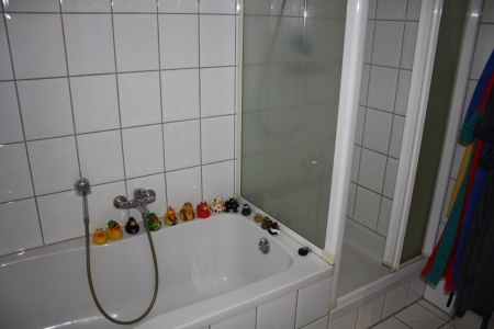 + Weißes Bad mit Wanne und Dusche