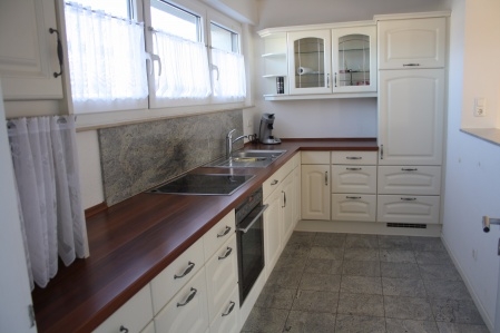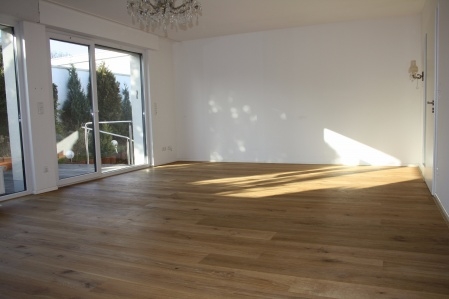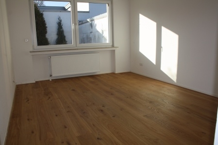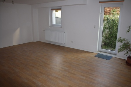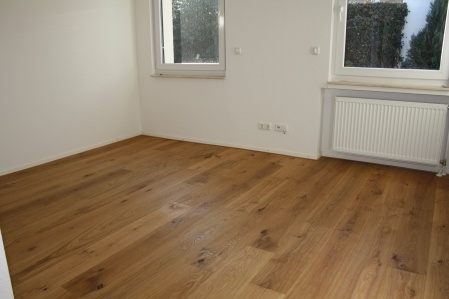 + Böden: Neuer Parkett-Boden im Wohn-und Schlafräumen, Küche und Flur in Granit gefliest,