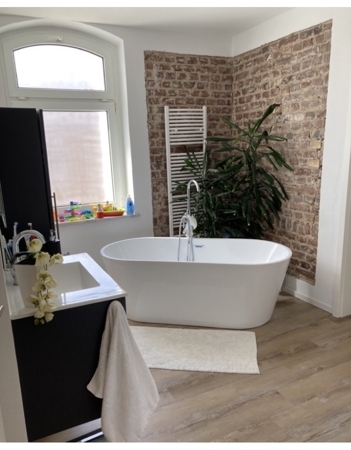 + Neuwertiges Bad mit Dusche und freistehender Badewanne